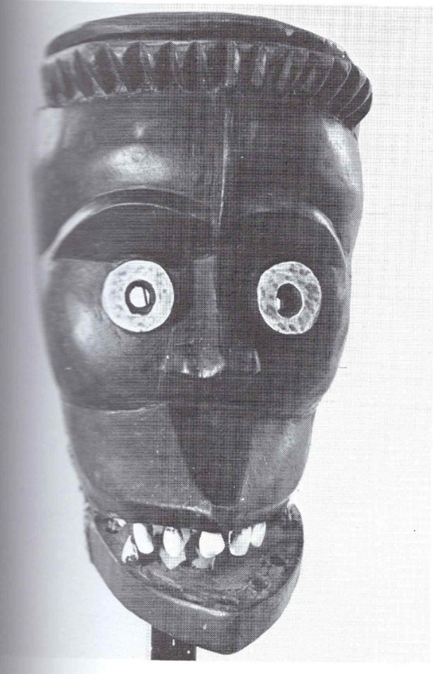 - The tongue is covered with a thin layer of leather dyed red…the hinged jaw may be moved as the mask speaks.