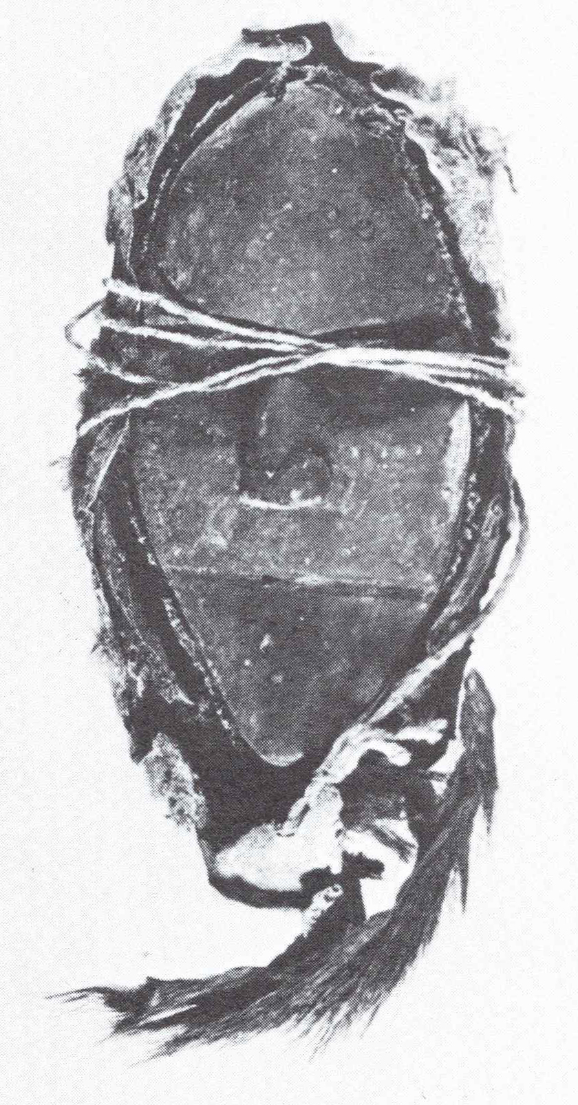 Though collected in a Bandi town, this mask probably originated among the Loma. This mask is unusual in that it came into the collection still enveloped in the sheepskin packet in which such masks are normally kept.