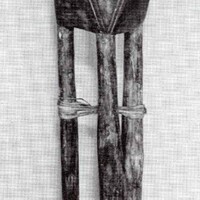 - The base and legs of this drum are carved from the same piece of wood. The head is fastened with fiber rope to three wooden pegs which fit into sockets in the sides of the drum.